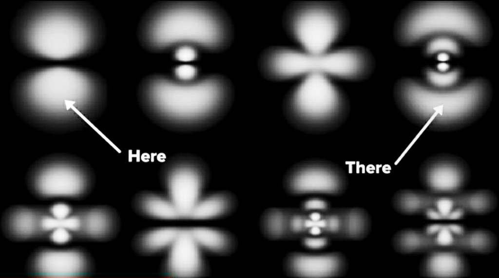 At its very simplest, the equation explained that an electron could be here or there, but never here nor there (see the figs. given below).